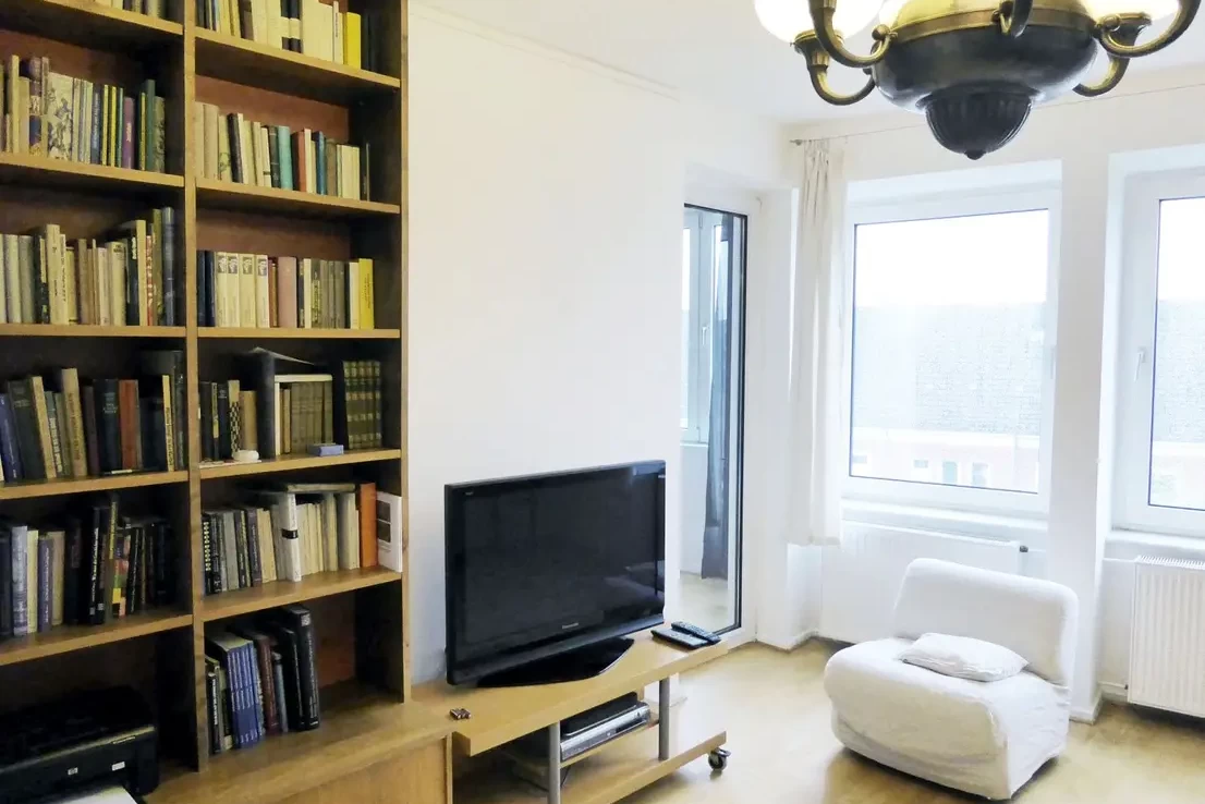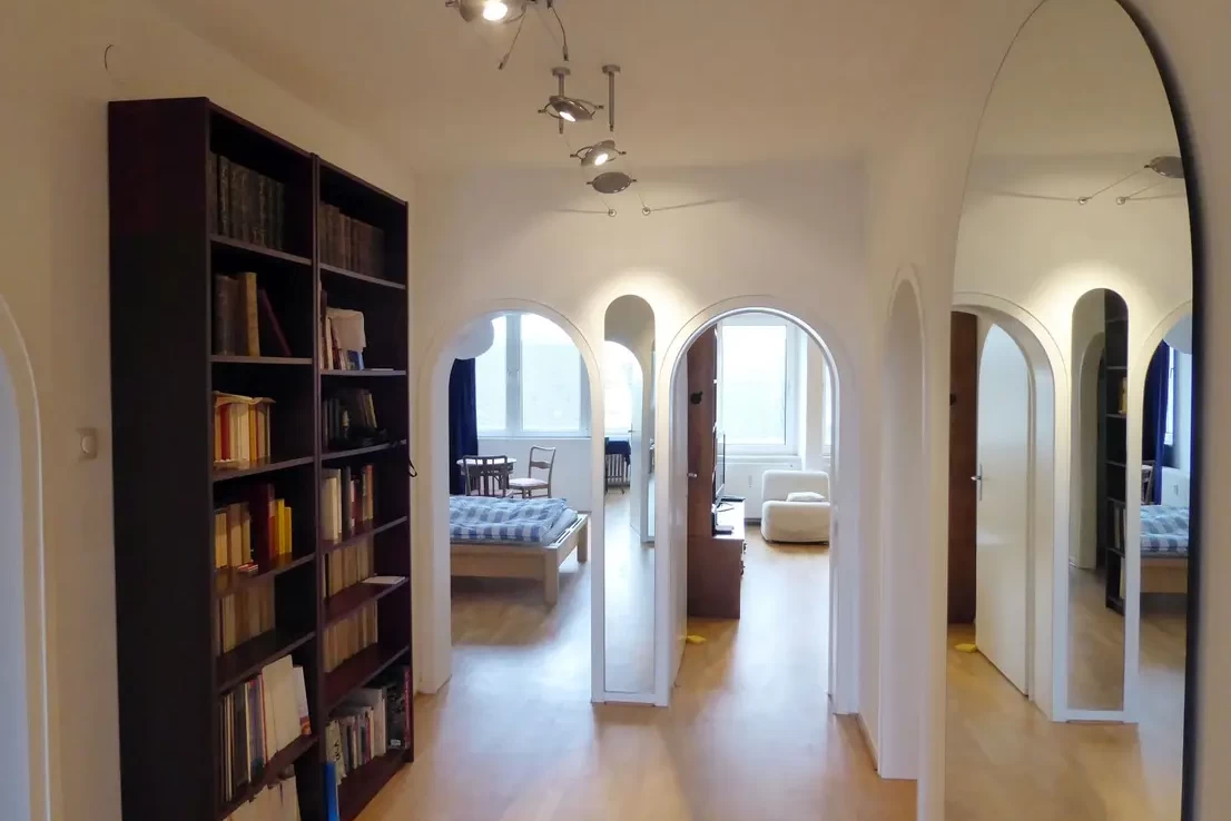 Daire yüksek, aydınlık odalar ve geniş pencereler ile karakterize edilmiştir.
